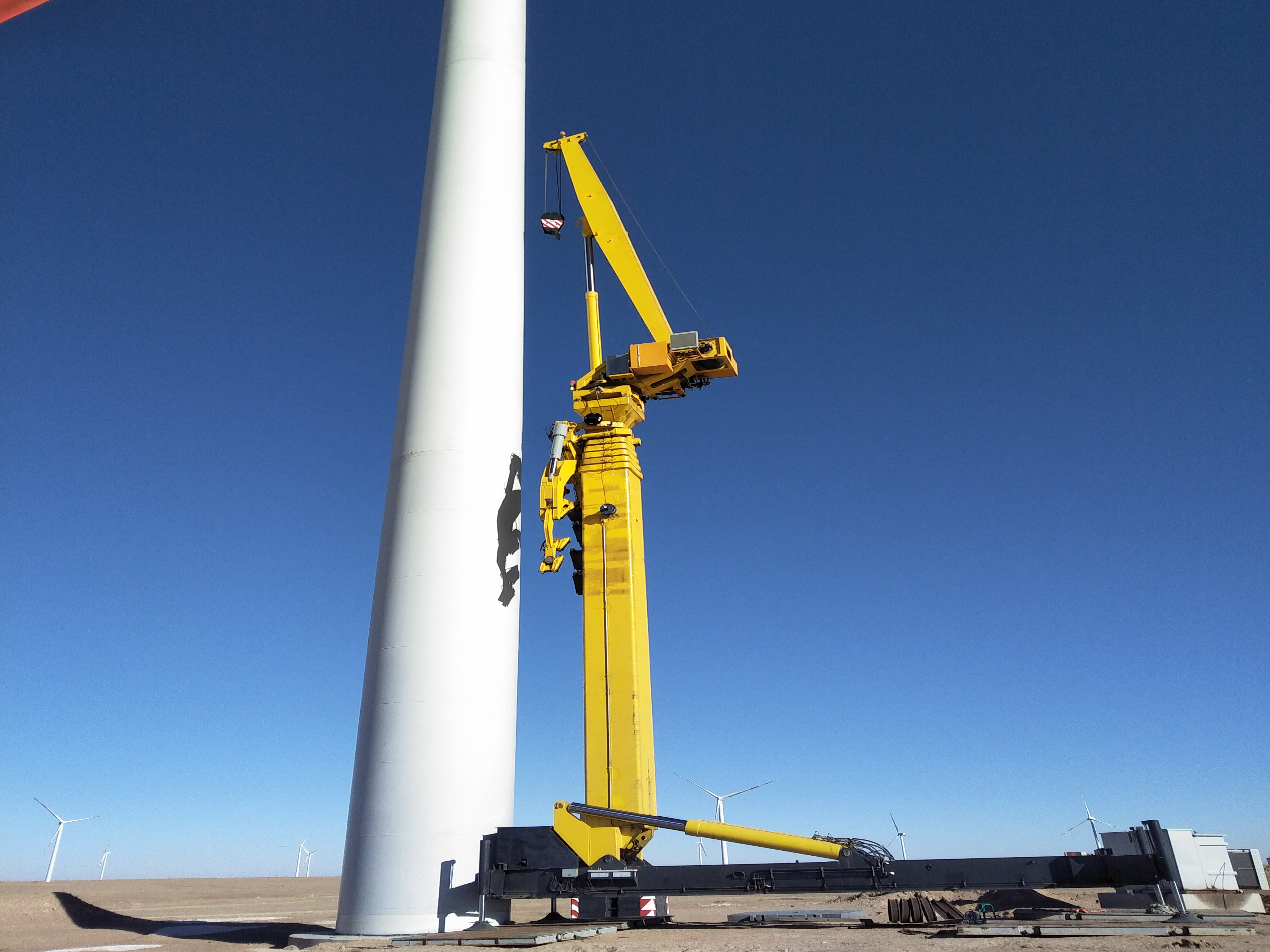 自主研發(fā)制造的風(fēng)電檢修起重機(jī),使用方便、性價比高、轉(zhuǎn)場運(yùn)輸成本低,適用于風(fēng)力發(fā)電機(jī)組發(fā)電機(jī)、增速器、葉片、葉輪等主要部件的檢修和更換。