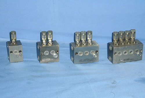雙線式分配器是雙線式集中潤(rùn)滑系統(tǒng)的核心元件,在兩條供油管交替的供油壓力作用下動(dòng)作,完成潤(rùn)滑劑的計(jì)量和向各個(gè)潤(rùn)滑點(diǎn)分配潤(rùn)滑劑的功能。