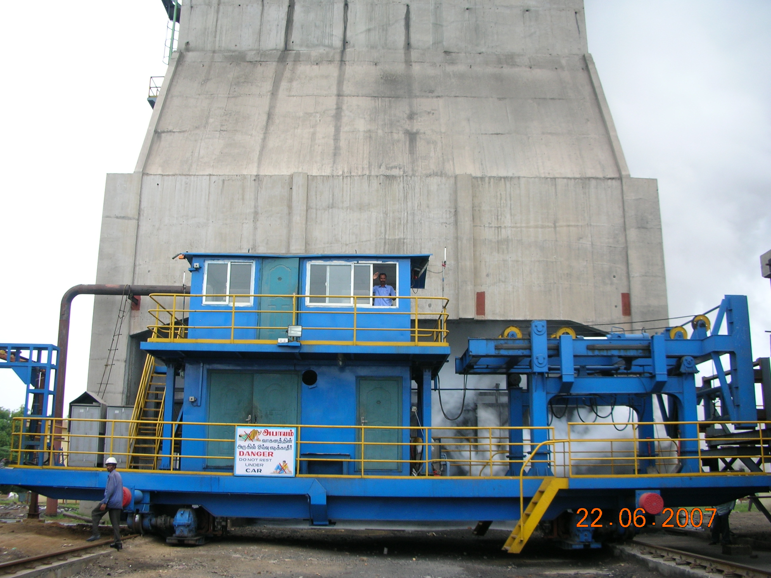 熱回收型焦?fàn)t機(jī)械設(shè)備,包含煉焦流程的全套機(jī)械設(shè)備:液壓搗固站完成煤粉的轉(zhuǎn)運(yùn)、將松散煤粉壓制成密實(shí)成型煤餅、協(xié)助將煤餅轉(zhuǎn)運(yùn)至裝煤車的工作;裝煤推焦車的裝煤機(jī)構(gòu)接收煤餅并將其輸送至炭化室進(jìn)行煉焦,其推焦機(jī)構(gòu)將煉制完成的焦炭推送至熄焦車;熄焦車接收熾熱焦炭,并在熄焦塔下下完成熄焦工作;電機(jī)車是熄焦車的牽引設(shè)備,完成焦炭由煉焦?fàn)t區(qū)到熄焦塔/干熄焦區(qū)的轉(zhuǎn)運(yùn)