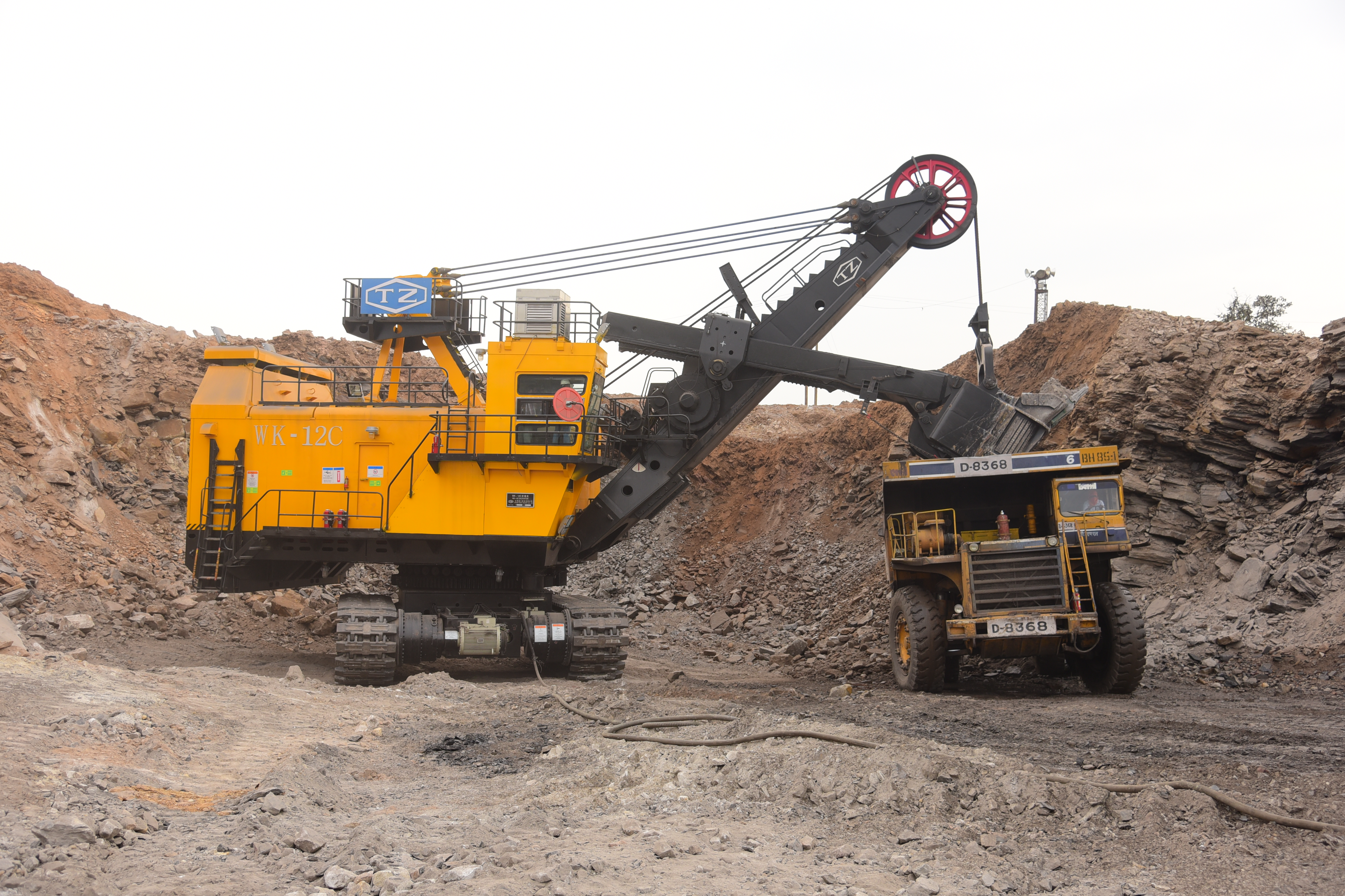 WK-12C礦用挖掘機主要用于大型露天煤礦、鐵礦及有色金屬礦山的剝離和采裝作業(yè),也可以用于水電建設工程中的土石方挖掘作業(yè)。WK-12C礦用挖掘機適用于年產(chǎn)量1000萬噸級以上的露天礦山使用,可與80-134t級礦用汽車、100t級的鐵路自翻車或800t/h-1500t/h自移式破碎站配套使用。