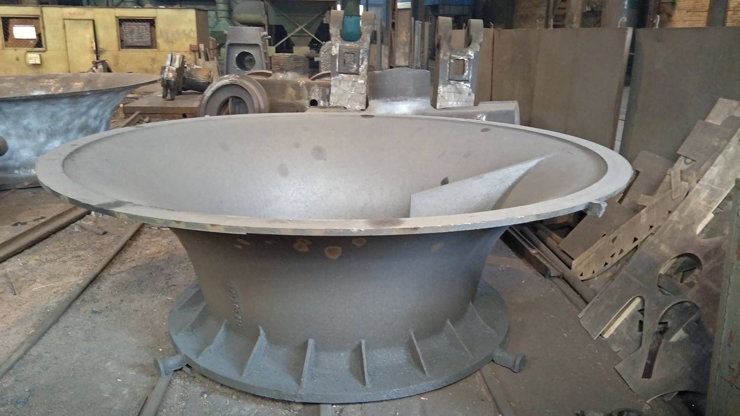 可生產(chǎn)毛重565t以下的各種鑄鋼件,年生產(chǎn)能力55000t以上,生產(chǎn)材質(zhì)包括碳鋼、低合金鋼、高錳鋼、不銹鋼和耐熱鋼等,主要采用堿酚醛樹脂砂工藝造型、精煉鋼水澆注。