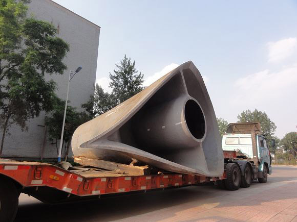 大型船用類鑄件,包括:掛舵臂、艉球、后尾軸架、艏柱、舵銷承座、舵桿承座、下舵鈕、下舵承本體等,均已批量生產(chǎn),外觀質量好,尺寸精度高,綜合性能高。