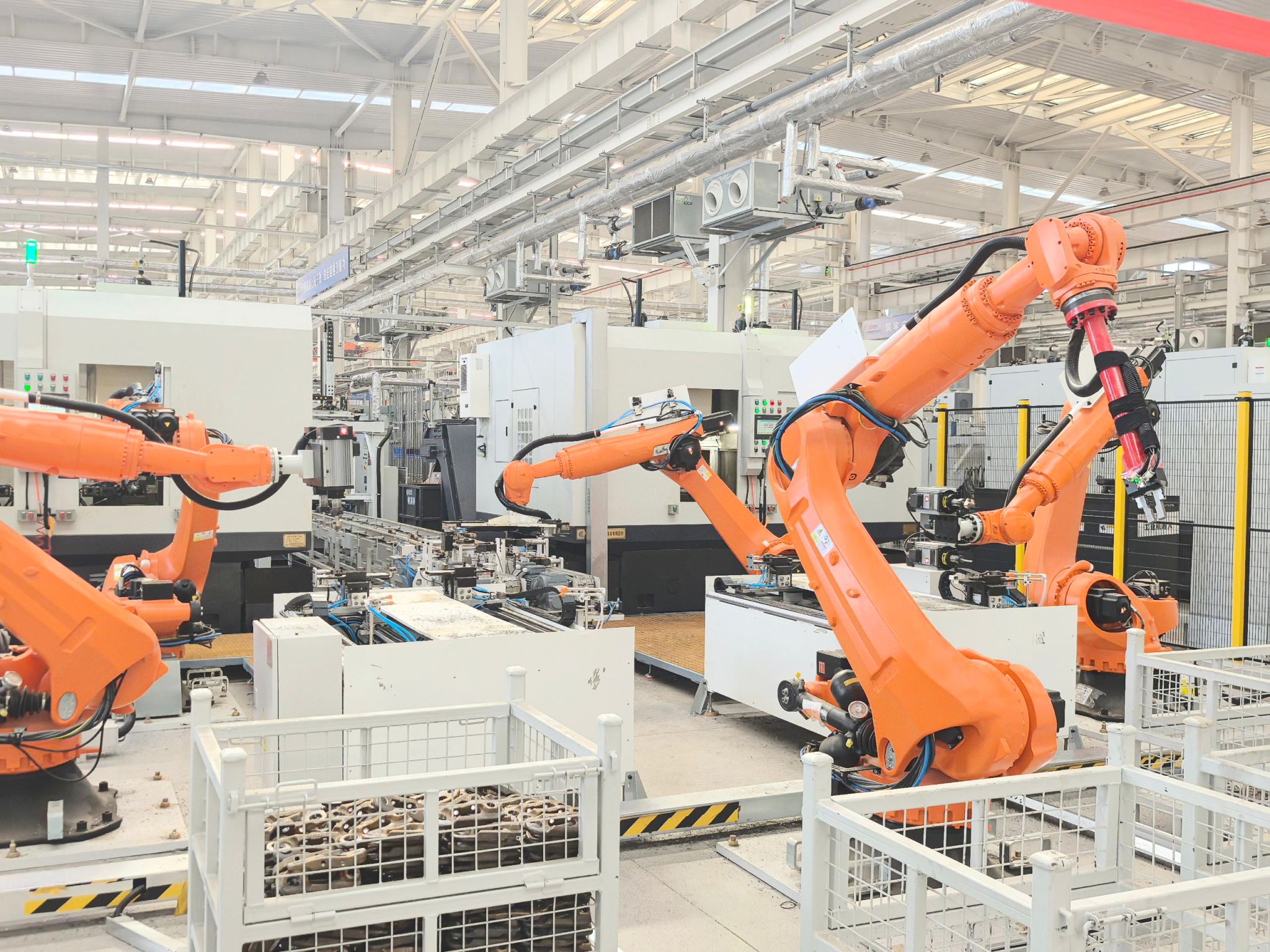 產(chǎn)能創(chuàng)新高,離不開數(shù)智技術(shù)的深度賦能。走進(jìn)生產(chǎn)現(xiàn)場,機(jī)械臂精準(zhǔn)作業(yè),操作屏數(shù)據(jù)實(shí)時(shí)跳動(dòng),智能“工友”與職工緊密協(xié)作。在3D視覺系統(tǒng)的精準(zhǔn)引導(dǎo)下,機(jī)械臂靈活完成組裝、壓裝、打卷、浸漆等工序,動(dòng)作行云流水、分毫不差。依托MOM智能管理系統(tǒng),從排產(chǎn)到倉儲調(diào)度全程優(yōu)化,并實(shí)現(xiàn)對每條履帶關(guān)鍵參數(shù)的實(shí)時(shí)監(jiān)控,確保質(zhì)量精準(zhǔn)可控。在這里,AGV智能配送機(jī)器人穿梭不息,實(shí)現(xiàn)了物料流轉(zhuǎn)全自動(dòng)化,整條產(chǎn)線運(yùn)行更加流暢,生產(chǎn)效率與產(chǎn)品品質(zhì)同步躍升。
