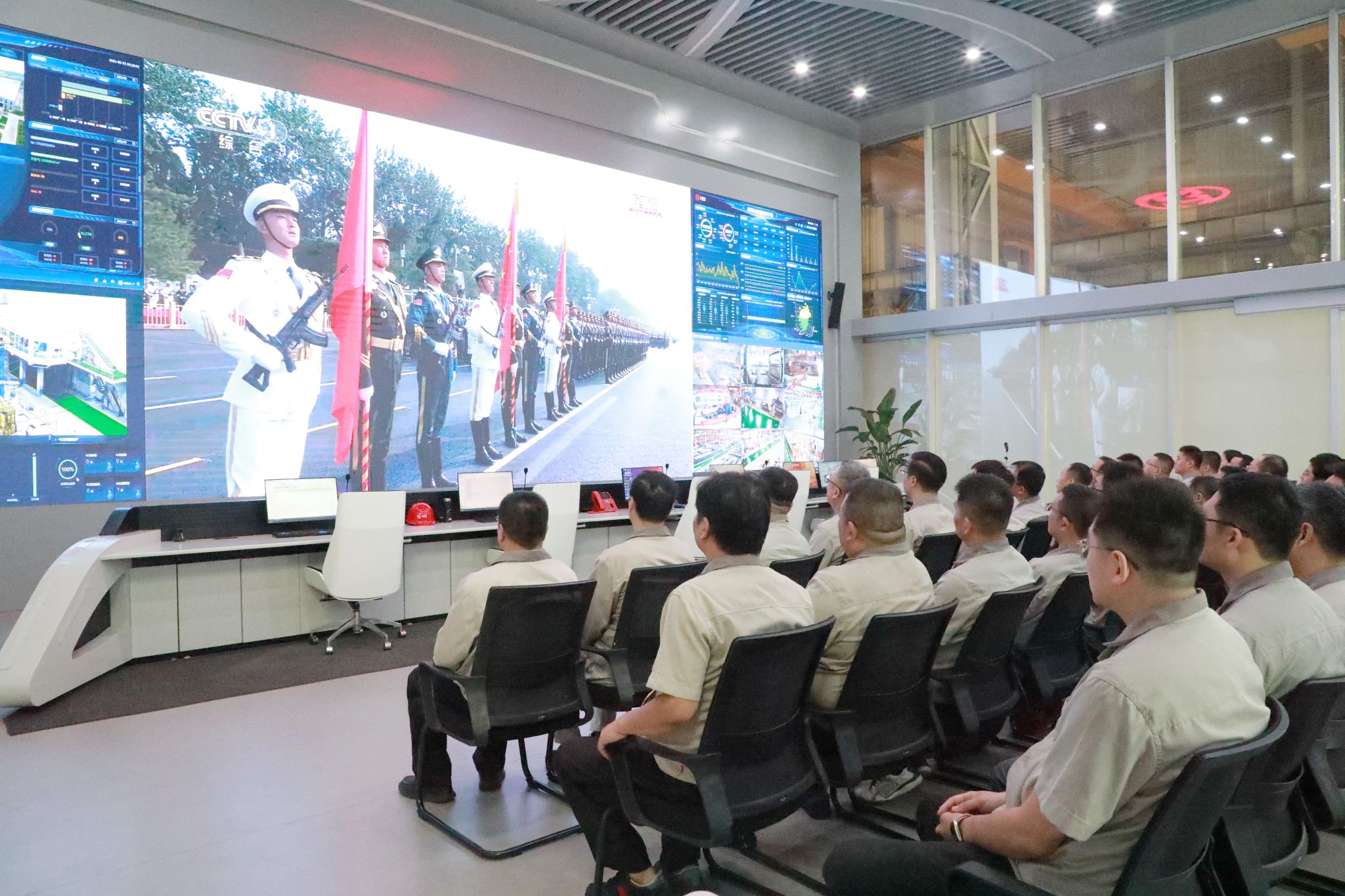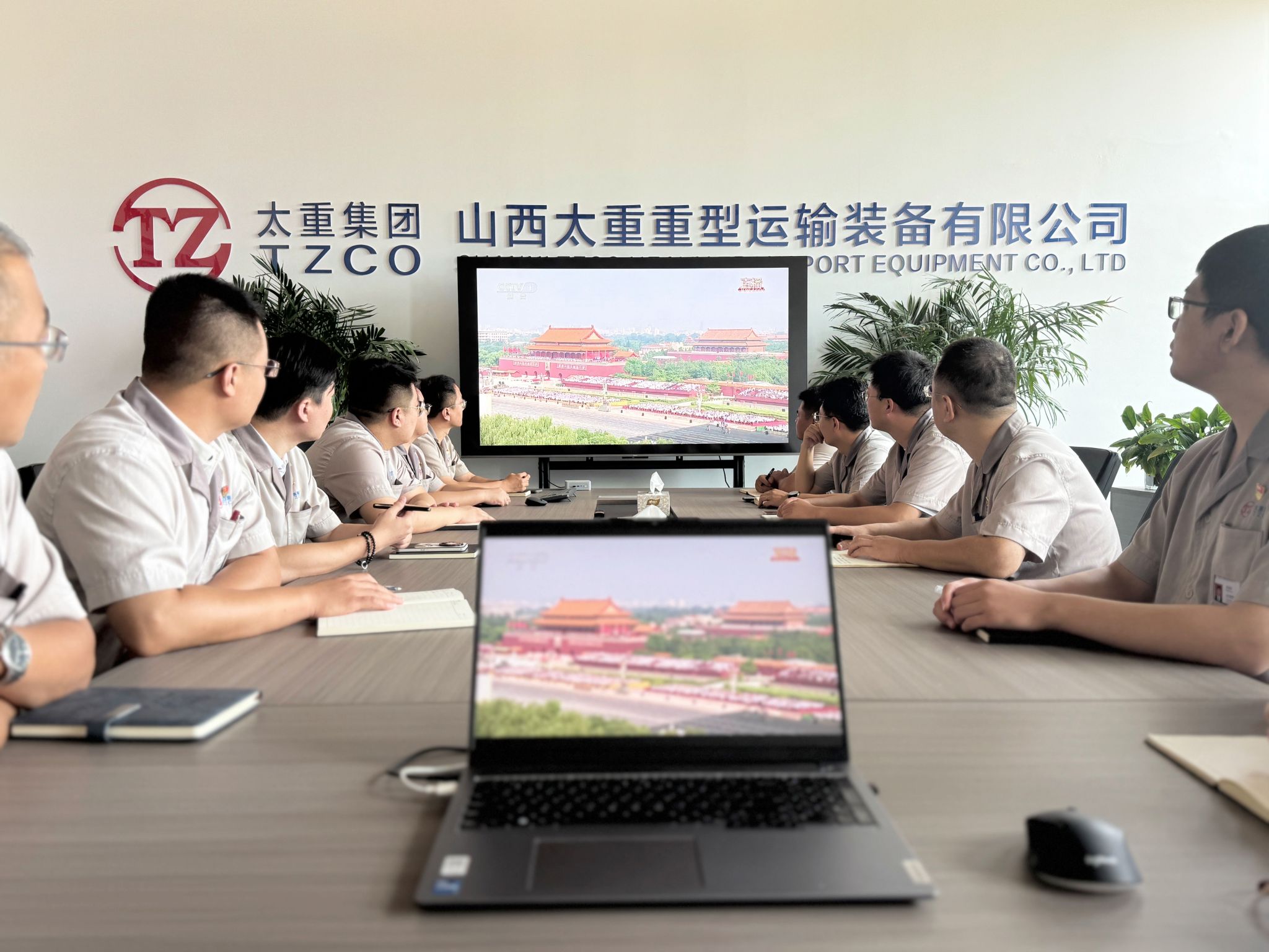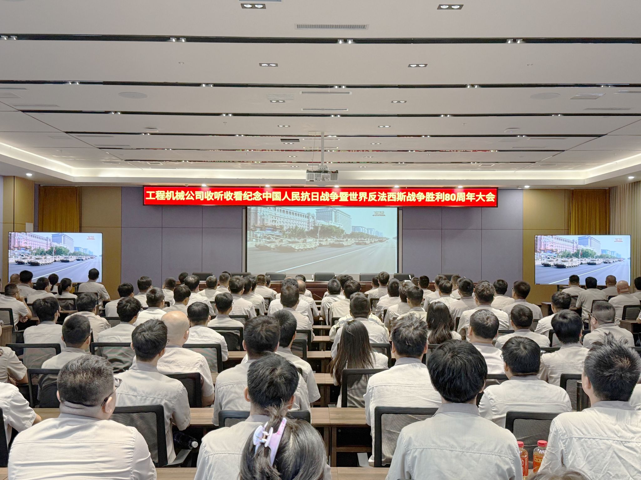 在集團總部報告廳,集團公司領(lǐng)導(dǎo)與各部門職工代表齊聚,集中收聽收看大會實況直播,共同聆聽感悟習(xí)近平總書記發(fā)表的重要講話,深刻體會講話中蘊含的歷史意義與時代價值,見證這一莊嚴而光輝的歷史時刻,愛國情懷在太重激蕩,奮斗熱情在每一位職工心中點燃。