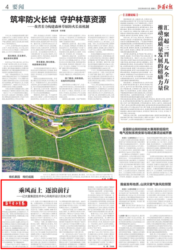 8月13日,山西日報《奮斗者正青春》專欄以《乘風(fēng)而上 逐浪前行》為題對朱少輝進(jìn)行深入報道。