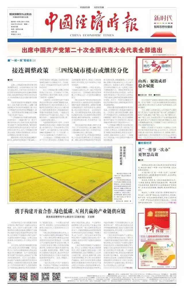 今日,中國(guó)經(jīng)濟(jì)時(shí)報(bào)頭版以《山西:聚鏈成群 穩(wěn)企賦能》為題,重點(diǎn)關(guān)注太重集團(tuán)憑借在高端裝備制造和風(fēng)電裝備領(lǐng)域的突出優(yōu)勢(shì),成為山西省唯一的“雙鏈主”企業(yè),主動(dòng)發(fā)揮“鏈主”企業(yè)的引領(lǐng)支撐作用,精準(zhǔn)延鏈補(bǔ)鏈強(qiáng)鏈,推動(dòng)形成全省“一企帶一鏈、一鏈帶一片”的產(chǎn)業(yè)發(fā)展格局。