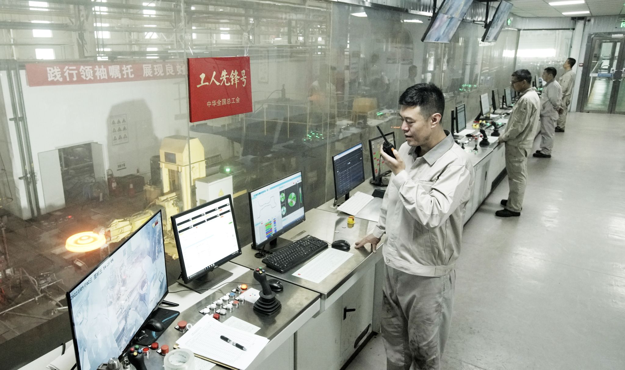 鍛熱工部負責(zé)車輪的加熱、預(yù)成型、成型、沖孔、軋制和壓彎及車輪擴氫、退火、淬火、正火和回火等工序。2019年鍛熱工部共生產(chǎn)車輪總數(shù)18萬件左右,超額完成俄羅斯8萬余件車輪交貨任務(wù)。2020年不斷優(yōu)化浸入式淬火臺滿足美國輪箍的生產(chǎn)和交貨需求,對噴淋淬火臺進行升級改造。2021年工部不斷統(tǒng)籌安排,合理優(yōu)化設(shè)計,自發(fā)組成突擊隊,保證了項目“當(dāng)年立項、當(dāng)年實施、當(dāng)年投產(chǎn)”,其中中徑14米環(huán)形爐僅用時85天順利交付使用,第一片熱軋車輪于2021年12月31日成功下線。
