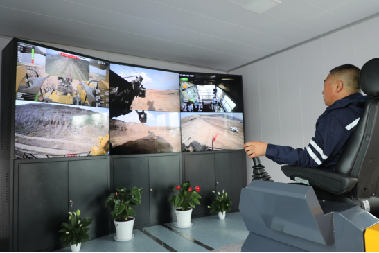 公司為霍林河南露天煤礦提供的WK-12C電鏟,配備了遠(yuǎn)程操控智慧化解決方案。通過對現(xiàn)場畫面、聲音、振動等環(huán)境感知和模擬,用戶可以在距離現(xiàn)場10km之外的遠(yuǎn)程操作室,對電鏟進(jìn)行操作控制,全鏈路延時控制在250ms以內(nèi)。