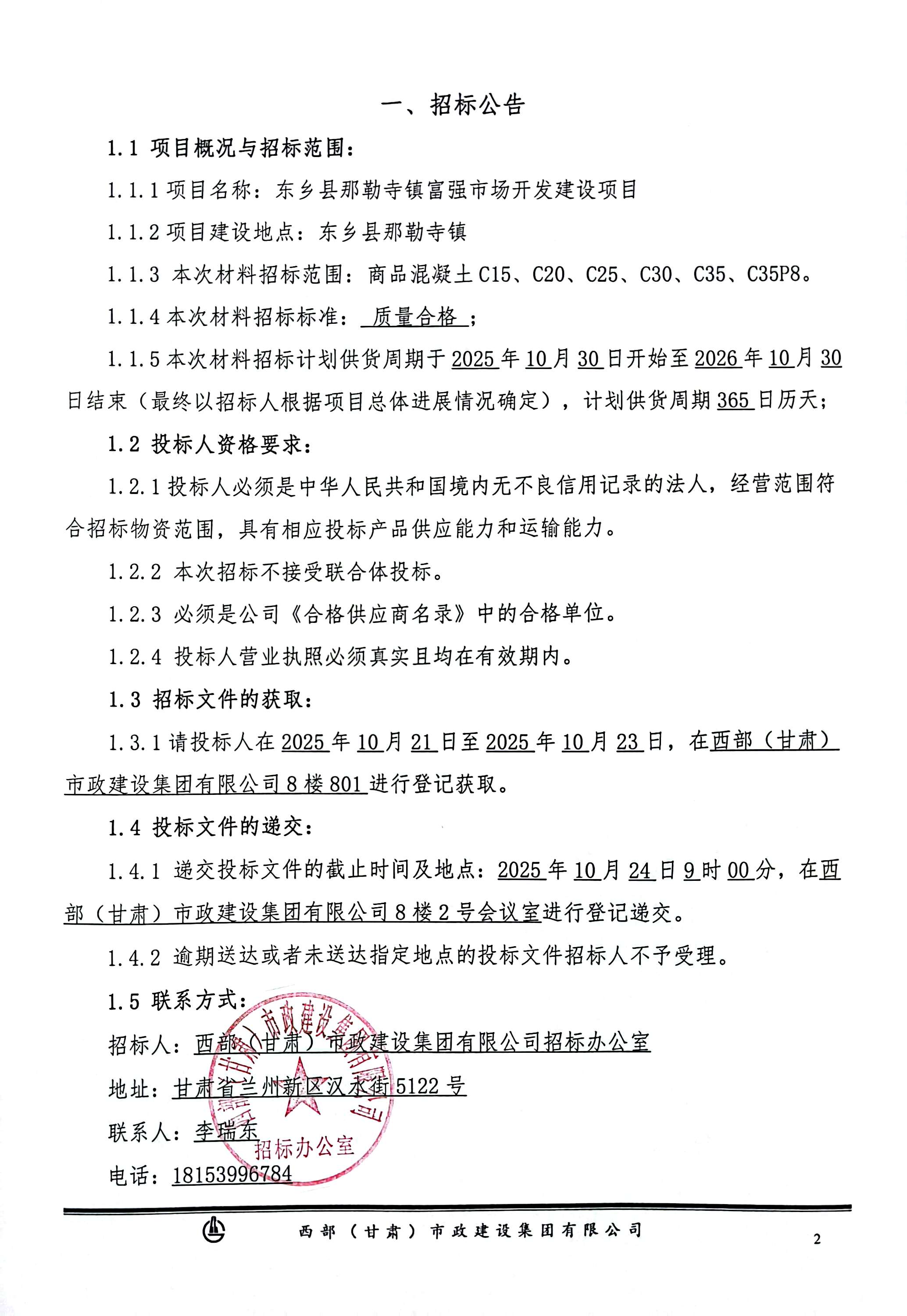 東鄉(xiāng)縣那勒寺鎮(zhèn)富強(qiáng)市場(chǎng)開發(fā)建設(shè)項(xiàng)目-商品混凝土-招標(biāo)公告