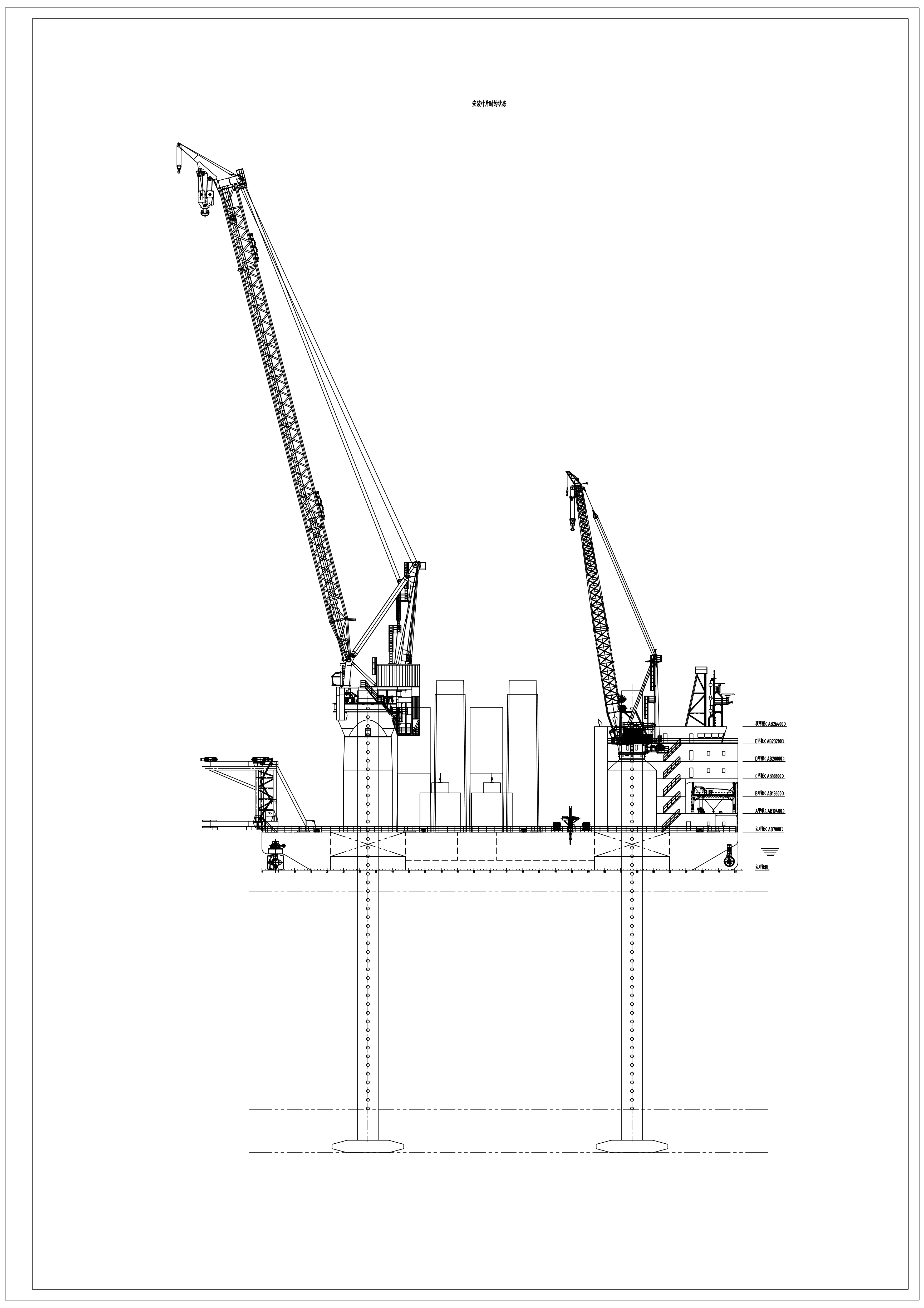 本平臺配有推進(jìn)系統(tǒng)和動力定位系統(tǒng),具有一定的航速和操縱性,可自航至碼頭或施工場地,不需要拖航