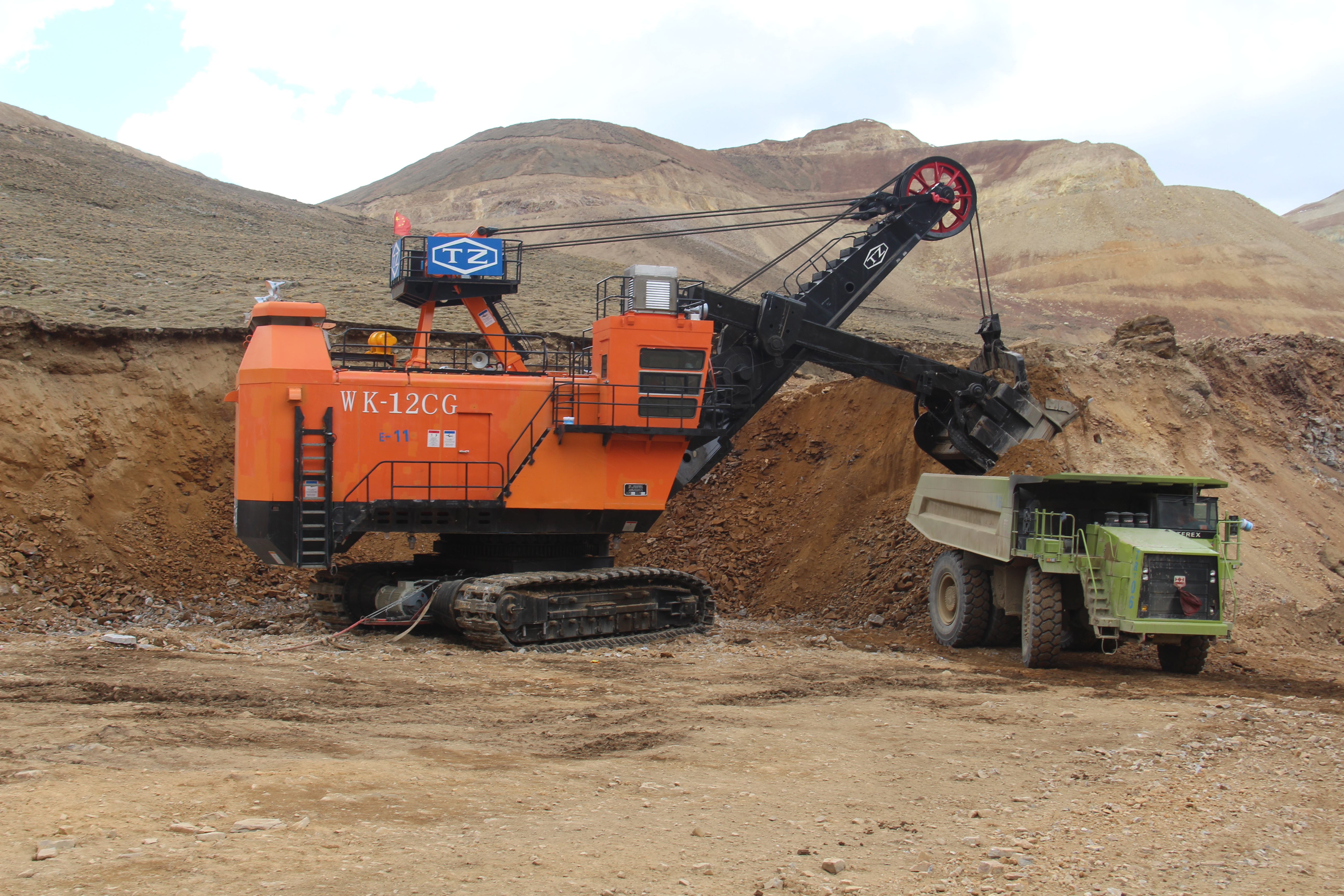 WK-12C礦用挖掘機主要用于大型露天煤礦、鐵礦及有色金屬礦山的剝離和采裝作業(yè),也可以用于水電建設工程中的土石方挖掘作業(yè)。WK-12C礦用挖掘機適用于年產(chǎn)量1000萬噸級以上的露天礦山使用,可與80-134t級礦用汽車、100t級的鐵路自翻車或800t/h-1500t/h自移式破碎站配套使用。