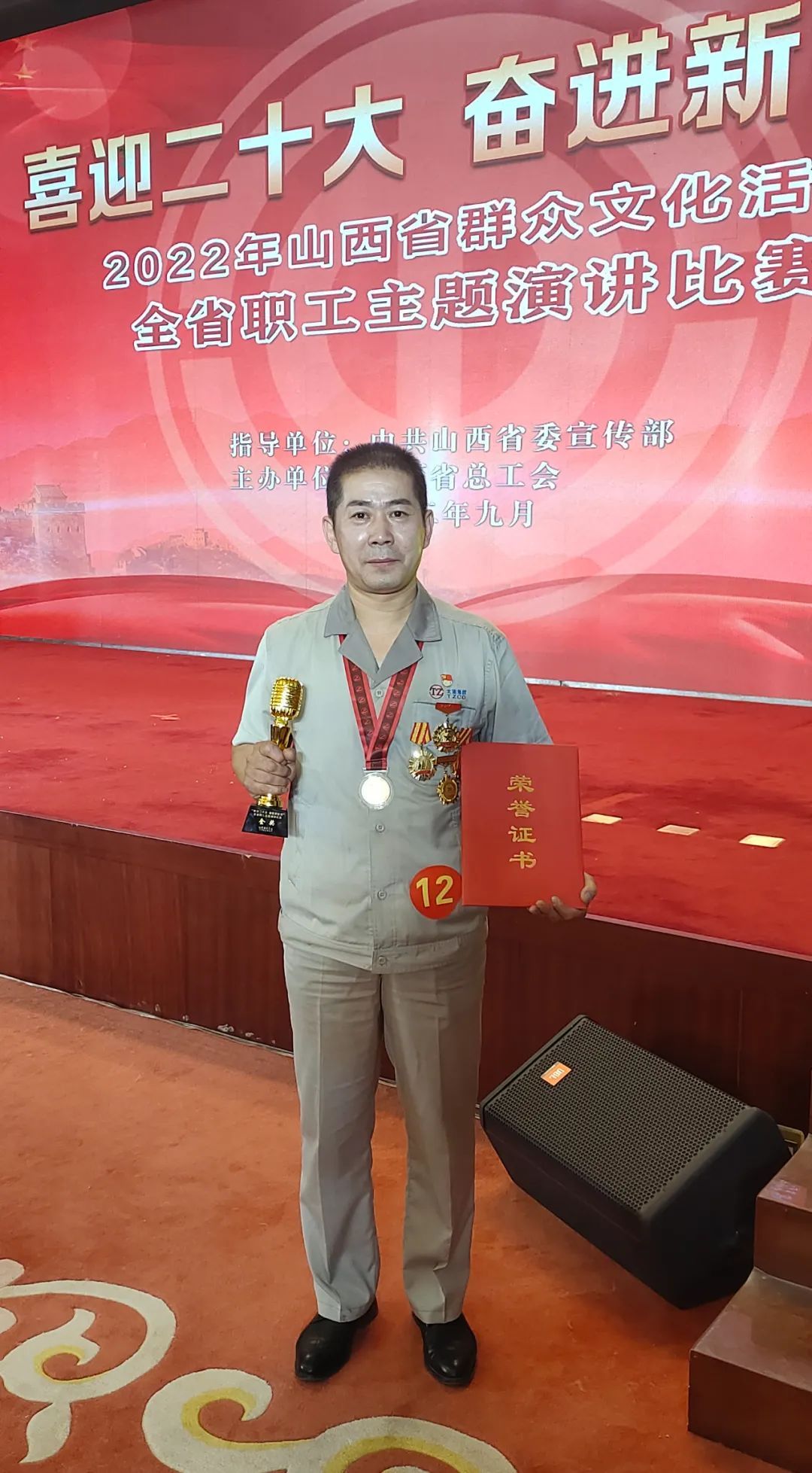 9月23日,“喜迎二十大 奮進新征程”2022年山西省群眾文化活動全省職工主題演講比賽總決賽在省總機關舉行,集團公司礦山分公司車工組組長陳賓在此次比賽中以9.93分的高分喜獲個人金獎第一名。