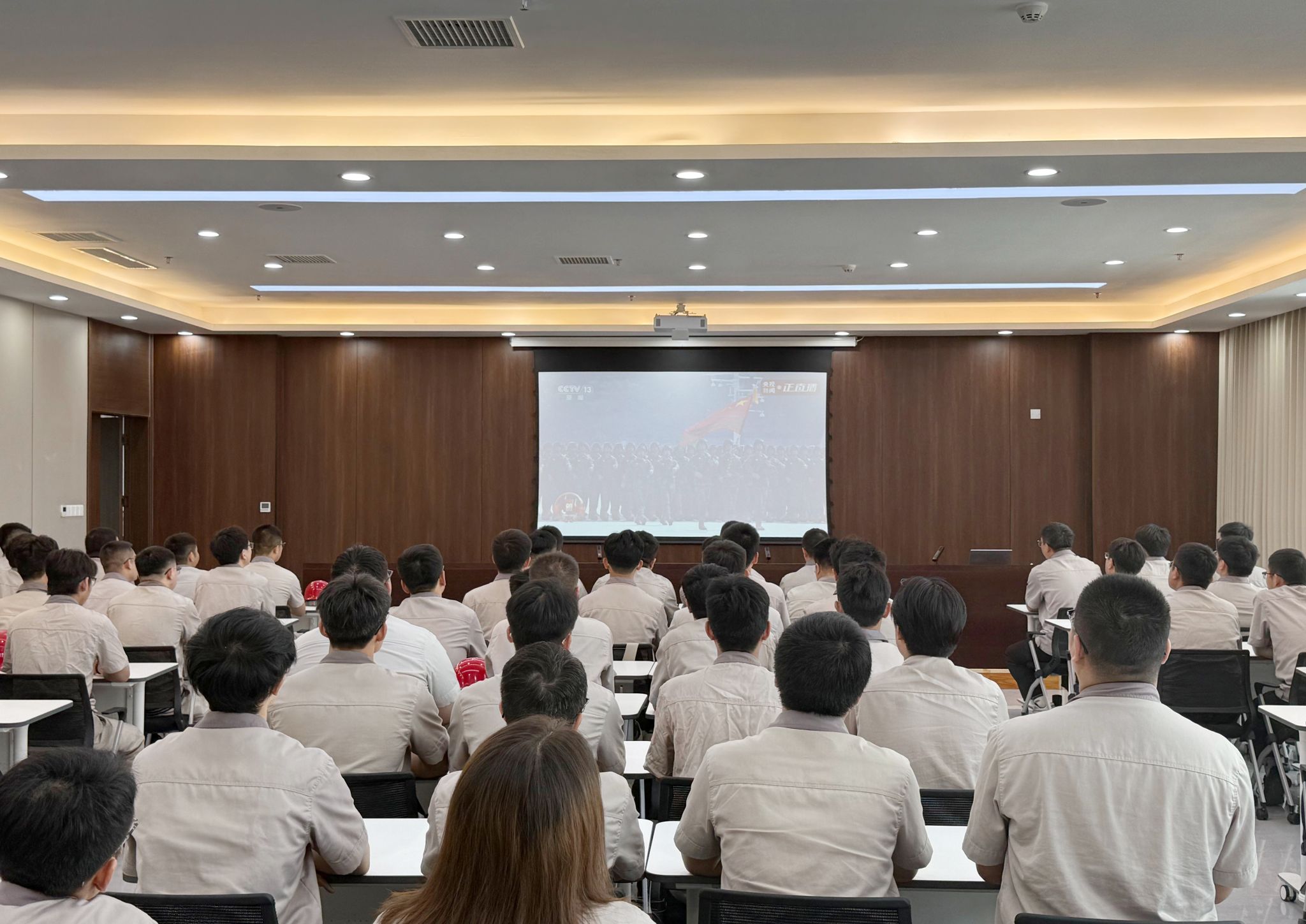 在集團總部報告廳,集團公司領(lǐng)導(dǎo)與各部門職工代表齊聚,集中收聽收看大會實況直播,共同聆聽感悟習(xí)近平總書記發(fā)表的重要講話,深刻體會講話中蘊含的歷史意義與時代價值,見證這一莊嚴而光輝的歷史時刻,愛國情懷在太重激蕩,奮斗熱情在每一位職工心中點燃。